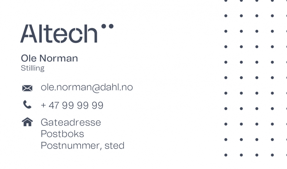 Dersom du har behov for nye visittkort kan du klikke på lenken nederst for å åpne en PDF mal med feltene som må fylles ut.